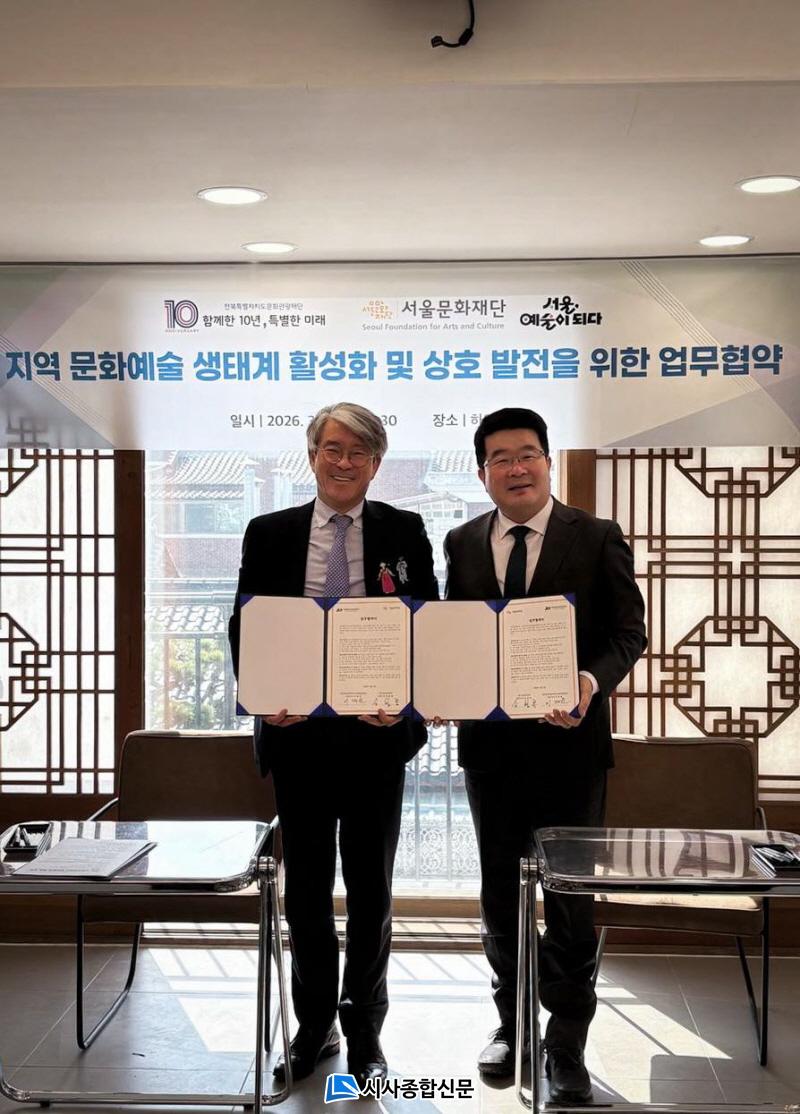 À̰æÀ± ´ëÇ¥ÀÌ»ç´Â ¡°À̹ø Çù¾àÀº ÀüºÏ°ú ¼¿ïÀÌ °¢ÀÚÀÇ ÀåÁ¡À» °áÇÕÇØ »õ·Î¿î ¡®K-Culture' È®»ê ¸ðµ¨À» ¸¸µå´Â Ãâ¹ßÁ¡ÀÌ´Ù.¡±¶ó¸ç, ¡°ÇØ¿Ü °ü±¤°´ À¯Ä¡ È®´ë¿Í ±Û·Î¹ú ÀÎÁöµµ Á¦°í´Â ¹°·Ð, ¿¹¼úÀΰú µµ¹ÎÀÌ Ã¼°¨ÇÒ ¼ö ÀÖ´Â ½ÇÁúÀû ¼º°ú·Î À̾îÁú ¼ö ÀÖµµ·Ï Àû±Ø ÃßÁøÇϰڴÙ.¡±¶ó°í ¹àÇû´Ù.