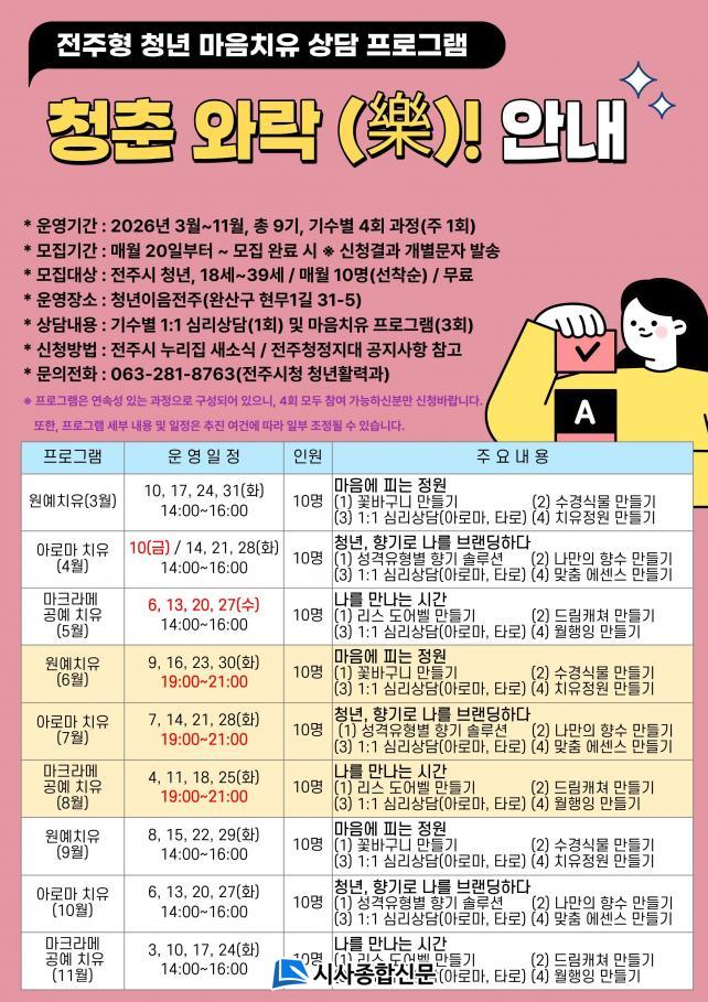 ÇÑÆí Âü¿©¸¦ Èñ¸ÁÇϴ û³âÀº ¸Å¿ù 20ÀϺÎÅÍ ÀüÁֽà ´©¸®Áý(www.jeonju.go.kr) ¶Ç´Â ÀüÁÖû³â¿Â¶óÀÎÇ÷§Æû ¡®Ã»Á¤Áö´ë¡¯(youth.jeonju.go.kr)¸¦ ÅëÇØ ½ÅûÇÒ ¼ö ÀÖÀ¸¸ç, ±âŸ ÀÚ¼¼ÇÑ »çÇ×Àº ÀüÈ(063-281-8763)·Î ¹®ÀÇÇÏ¸é µÈ´Ù.
