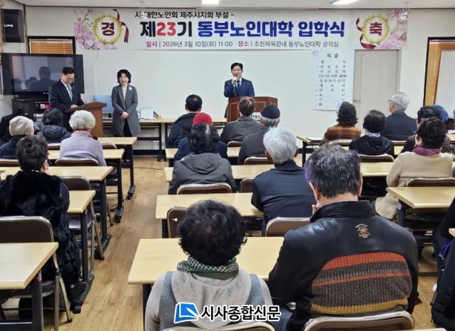 [½Ã»çÁ¾ÇսŹ® = °í¼º¹Î ±âÀÚ] Çö¿øµ· Á¦Áֽà ºÎ½ÃÀåÀº 3¿ù 10ÀÏ(È) Á¶ÃµÃ¼À°°ü¿¡¼ ¿¸° Á¦23±â Á¦Áֽõ¿ºÎ³ëÀδëÇÐ ÀÔÇнĿ¡ Âü¼®ÇØ ¾î¸£½ÅµéÀÇ ¹è¿ò¿¡ ´ëÇÑ ¿Á¤¿¡ °¨»çÀÇ ¶æÀ» ÀüÇß´Ù.