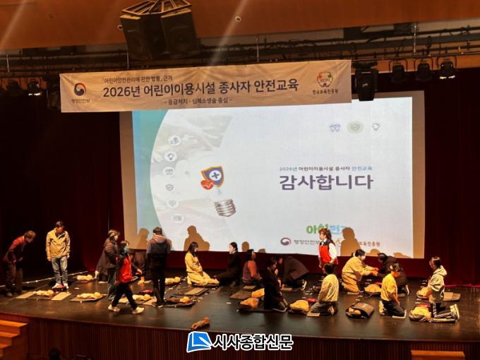 ¾î¸°ÀÌ ÀÌ¿ë½Ã¼³ Á¾»çÀÚ ¾ÈÀü±³À°Àº ¡¸¾î¸°ÀÌ ¾ÈÀü°ü¸®¿¡ °üÇÑ ¹ý·ü¡¹¿¡ µû¸¥ ¹ýÁ¤ Àǹ«±³À°À¸·Î, ¾î¸°ÀÌ ÀÌ¿ë½Ã¼³¿¡¼ 13¼¼ ¹Ì¸¸ ¾î¸°À̸¦ ´ë»óÀ¸·Î ±³À°¡¤º¸À° µîÀÇ ¾÷¹«¸¦ ¼öÇàÇÏ´Â Á¾»çÀÚ´Â ¸Å³â ¿Â¶óÀÎ À̷б³À° 2½Ã°£°ú ÀÀ±Þóġ ´ë¸é ½Ç½À±³À° 2½Ã°£ µî ÃÑ 4½Ã°£ ÀÌ»óÀÇ ¾ÈÀü±³À°À» À̼öÇØ¾ß ÇÑ´Ù.
