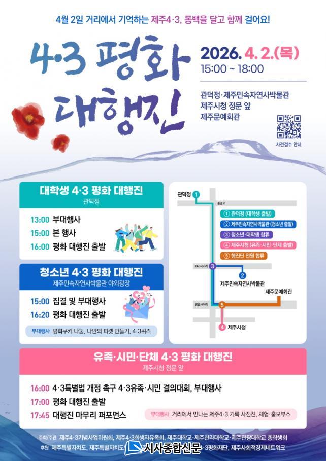 Âü°¡ ½ÅûÀº Çà»ç Æ÷½ºÅÍÀÇ Å¥¾Ë(QR)ÄÚµå Á¢¼Ó ¶Ç´Â À̸ÞÀÏ(43jeju70@gmail.com / ¹®ÀÇó: (»ç)Á¦ÁÖ4¡¤3±â³ä»ç¾÷À§¿øÈ¸ 070-4324-4370)À» ÅëÇØ °¡´ÉÇϸç, 4¡¤3À» ÇÔ²² ±â¾ïÇϰíÀÚ ÇÏ´Â ´ëÇлý¡¤Ã»¼Ò³â¡¤4¡¤3À¯Á·¡¤µµ¹Î µî Àü±¹ ´©±¸³ª Âü¿©ÇÒ ¼ö ÀÖ´Ù.
