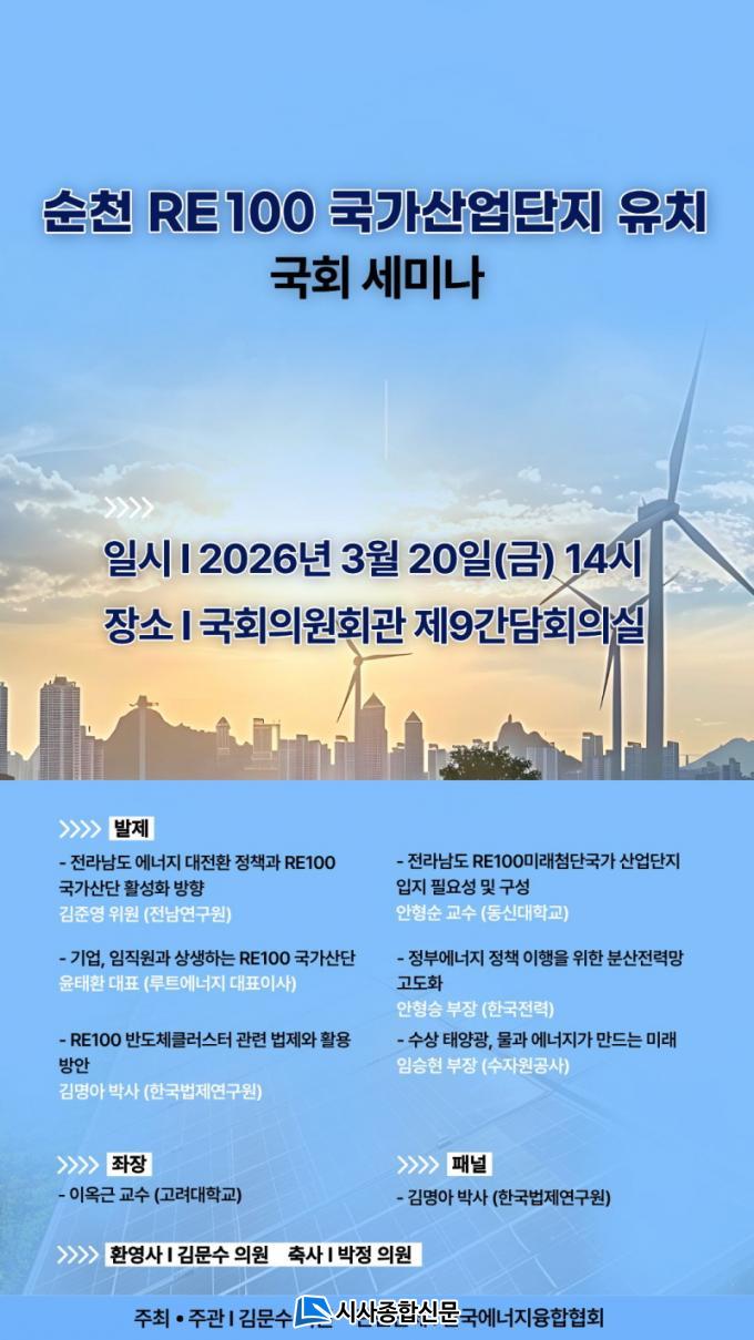 ±è¹®¼ö (Àü³² ¼øÃµ°©, ´õºÒ¾î¹ÎÁÖ´ç) ±¹È¸ÀÇ¿ø°ú Çѱ¹¿¡³ÊÁöÀ¶ÇÕÇùȸ´Â 20ÀÏ ±¹È¸ÀÇ¿øÈ¸°ü Á¦9°£´ãȸÀǽǿ¡¼ ¡¸¼øÃµ RE100 ±¹°¡»ê¾÷´ÜÁö À¯Ä¡ ±¹È¸ ¼¼¹Ì³ª¡¹¸¦ °³ÃÖÇÑ´Ù.