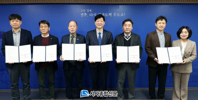 ÀüÁֽô 20ÀÏ ÀüÁÖ ºÎ½ÃÀå½Ç¿¡¼ ÀüºÏÀüÁÖ¼öÆÛ¸¶ÄÏÇùµ¿Á¶ÇÕ(Áß¼ÒÀ¯Åë)°ú »ç´Ü¹ýÀÎ Çѱ¹Ã¼ÀνºÅä¾îÇùȸ, Áö¿ª ´ëÇüÀ¯Åë»ç(·Ôµ¥¸¶Æ® ÀüÁÖÁ¡, À̸¶Æ® ÀüÁÖÁ¡, ȨÇ÷¯½º ÀüÁÖÈ¿ÀÚÁ¡)¿Í ¡®ÀüÁÖ½Ã-´ë‧Áß¼ÒÀ¯Åë °£ »ó»ýÇù·ÂÀ» À§ÇÑ Çù¾à¡¯À» ü°áÇß´Ù.