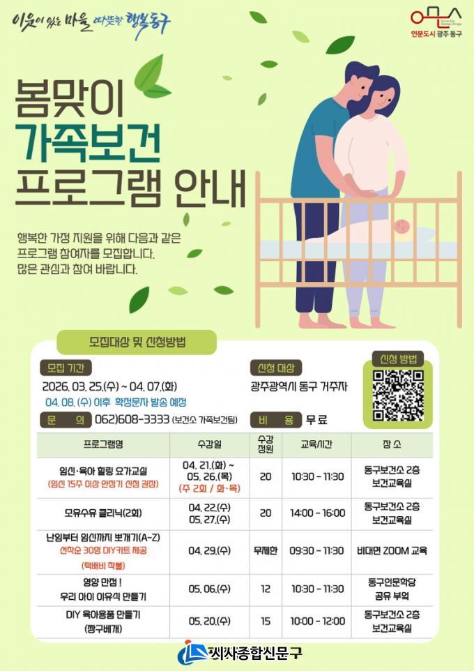 [½Ã»çÁ¾ÇսŹ® = ¿À½ÂÅà ±âÀÚ] ±¤ÁÖ µ¿±¸´Â Àӽš¤Ãâ»ê °¡Á¤ÀÇ °Ç° ÁõÁø°ú °¡Á· Ä£ÈÀû ȯ°æ Á¶¼ºÀ» À§ÇØ ¡®º½¸ÂÀÌ °¡Á·º¸°Ç ÇÁ·Î±×·¥¡¯ Âü°¡ÀÚ¸¦ ¸ðÁýÇÑ´Ù°í ¹àÇû´Ù.