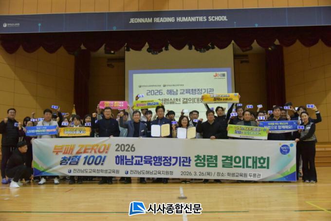 ÇØ³²±³À°Áö¿øÃ» Á¶¿¬ÁÖ ±³À°Àå°ú Çлý±³À°¿ø ±èâ±Ù ¿øÀåÀº ¡°Ã»·ÅÀº °øÁ÷»çȸÀÇ ±âº» °¡Ä¡ÀÌÀÚ ½Å·ÚÀÇ Ãâ¹ßÁ¡ÀÌ´Ù¡±¶ó¸ç ¡°¾ÕÀ¸·Îµµ µÎ ±â°üÀÌ ±ä¹ÐÈ÷ Çù·ÂÇØ û·ÅÇÑ °øÁ÷¹®È¸¦ Á¤Âø½Ã۰í Áö¿ª»çȸ¿Í ÇÔ²²ÇÏ´Â ±ú²ýÇÑ ±³À°ÇàÁ¤À» ¸¸µé¾î°¡°Ú´Ù¡±¶ó°í ¸»Çß´Ù.