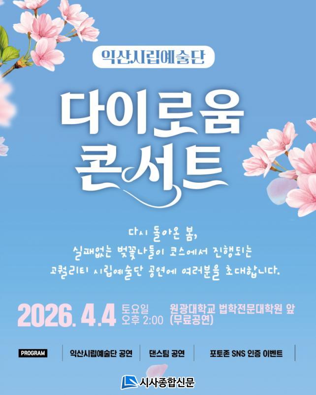 ÀÍ»ê½Ã´Â ¿À´Â 4¿ù 4ÀÏ ¿ÀÈÄ 2½Ã, ¿ø±¤´ëÇб³ ¹ýÇÐÀü¹®´ëÇпø ¾Õ ¾ß¿Ü°ø°£¿¡¼ ÀÍ»ê½Ã¸³¿¹¼ú´ÜÀÇ '´ÙÀ̷οò ÄܼƮ'°¡ ¿¸°´Ù°í 30ÀÏ ¹àÇû´Ù.