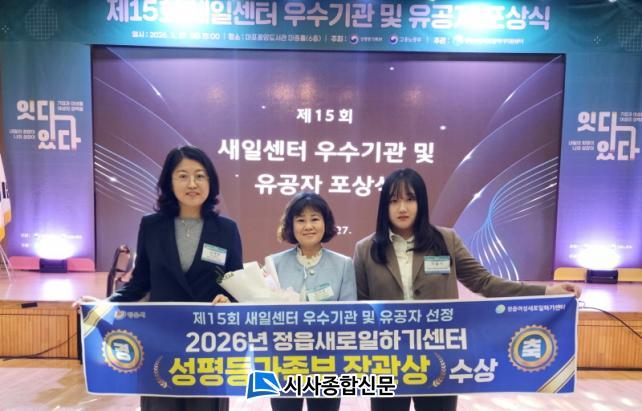 Á¤À¾»õÀϼ¾ÅÍ °ü°èÀÚ´Â ¡°À̹ø ¼ö»óÀº Á÷¿ø ¸ðµÎ°¡ Áö¿ª Ư¼º¿¡ ¸ÂÃá Ãë¾÷ Áö¿ø ¼ºñ½º¸¦ Á¦°øÇϱâ À§ÇØ ³ë·ÂÇÑ °á°ú¡±¶ó¸ç ¡°¾ÕÀ¸·Îµµ Á÷¾÷ ±³À° ÈÆ·Ã °íµµÈ¿Í ±â¾÷ ¿¬°è °È¸¦ ÅëÇØ Áö¿ª ¿©¼ºÀÇ ¾ÈÁ¤ÀûÀÎ ÀÏÀÚ¸® âÃâ¿¡ Èû¾²°Ú´Ù¡±°í ¸»Çß´Ù.