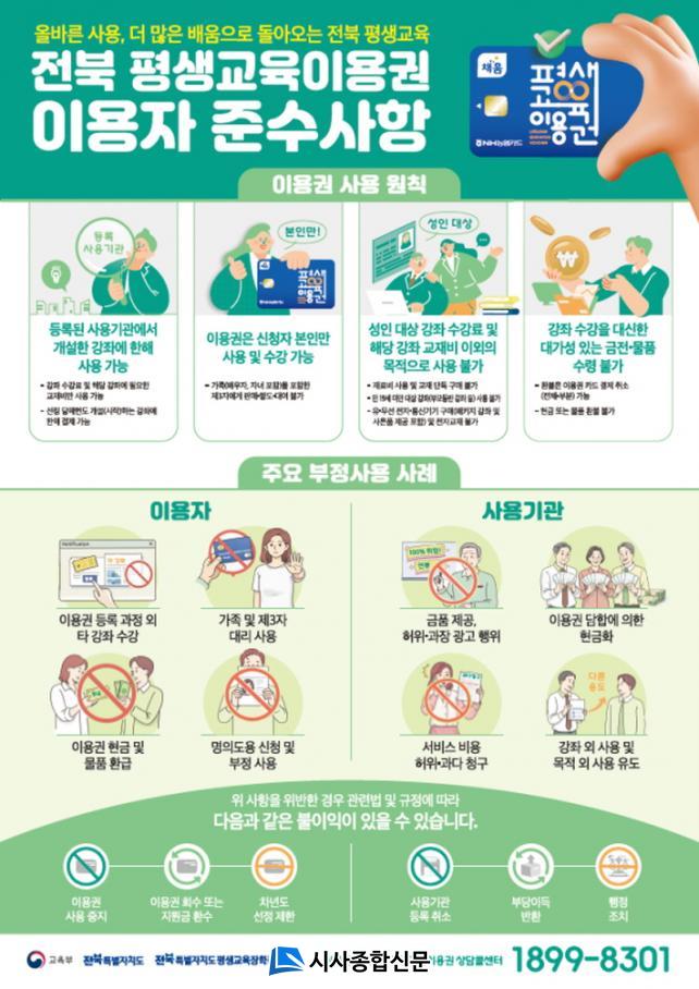 ÀÌÇö¿õ ÀüºÏÆò»ý±³À°ÀåÇÐÁøÈï¿øÀåÀº¡°À̹ø Æò»ý±³À°ÀÌ¿ë±ÇÀÌ ¹è¿òÀÇ ±âȸ¿¡¼ ¼Ò¿ÜµÈ µµ¹Îµé¿¡°Ô ½ÇÁúÀûÀÎ º¯ÈÀÇ °è±â°¡ µÇ±æ ¹Ù¶õ´Ù¡±¸ç, ¡°»ç¿ë±â°üµµ ¿î¿µÁöħÀ» ÁؼöÇØ °øÁ¤Çϰí Åõ¸íÇÑ »ç¾÷ÀÌ µÉ ¼ö ÀÖµµ·Ï ÇùÁ¶ÇØ´Þ¶ó¡±°í ´çºÎÇß´Ù.