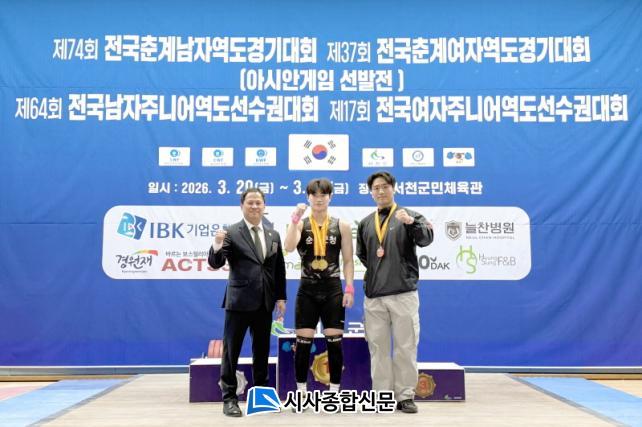 ³²ÀÚ 75kg±Þ(ÁִϾî)¿¡ ÃâÀüÇÑ Àå¼Áø ¼±¼ö´Â Àλó, ¿ë»ó, ÇÕ°è Àü ºÎ¹®¿¡¼ 1À§¸¦ ±â·ÏÇÏ¸ç ´ëȸ 3°ü¿Õ¿¡ ¿À¸£´Â ¾ÐµµÀûÀÎ ¼º°ú¸¦ °Åµ×´Ù. ¾ÈÁ¤ÀûÀÎ °æ±â ¿î¿µ°ú ¶Ù¾î³ ÁýÁß·ÂÀ» ¹ÙÅÁÀ¸·Î Â÷¼¼´ë ¿ªµµ À¯¸ÁÁַμÀÇ °¡´É¼ºÀ» È®½ÇÈ÷ ÀÔÁõÇß´Ù.