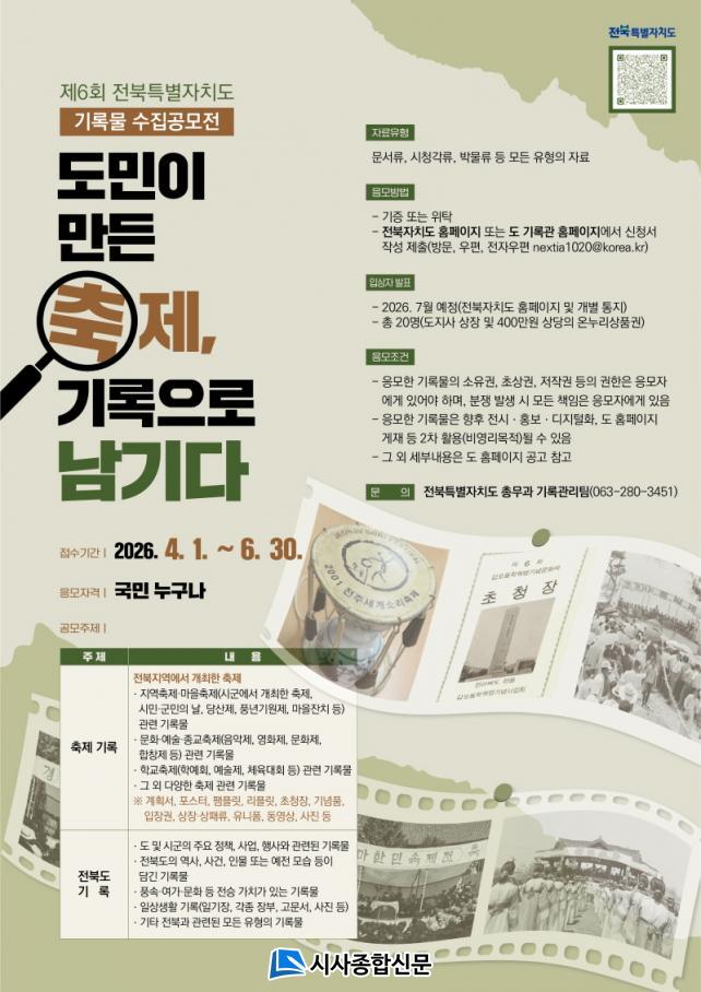 À̹ø °ø¸ðÀüÀº ¡¸µµ¹ÎÀÌ ¸¸µç ÃàÁ¦, ±â·ÏÀ¸·Î ³²±â´Ù¡¹¸¦ ÁÖÁ¦·Î ÀüºÏ¿¡¼ ¿¸° Áö¿ª¡¤¸¶À»¡¤¹®È¿¹¼ú¡¤Çб³ ÃàÁ¦ µî ´Ù¾çÇÑ ÃàÁ¦ °ü·Ã ±â·Ï¹°À» ¼öÁýÇÑ´Ù. ¾Æ¿ï·¯ ÃàÁ¦ ±â·Ï¹° ¿Ü¿¡µµ µµ ¹× ½Ã±º ÁÖ¿ä Á¤Ã¥°ú »ç¾÷, ÀüºÏÀÇ ¿¾ ¸ð½À, ÀϱâÀå°ú °¢Á¾ ÀåºÎ µî ÀÏ»ó»ýȰ ±â·Ï¹°±îÁö Æø³Ð°Ô Á¢¼öÇÑ´Ù.