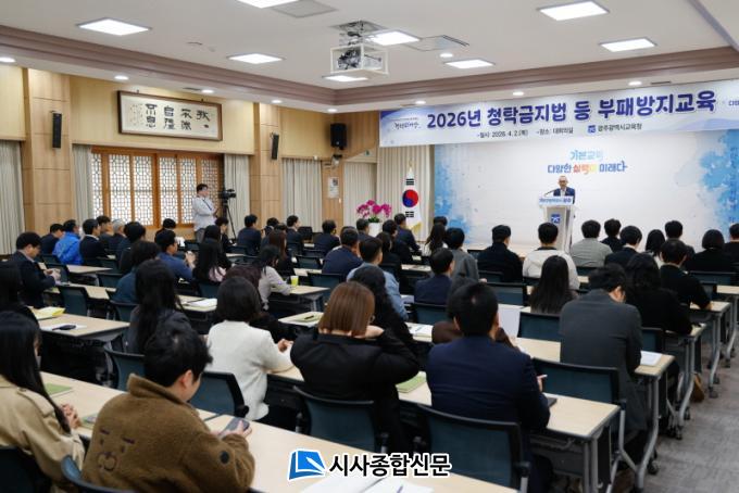 [½Ã»çÁ¾ÇսŹ® = ¿À½ÂÅà ±âÀÚ] ±¤Áֽñ³À°Ã»Àº 2ÀÏ º»Ã» ´ëȸÀǽǿ¡¼­ °íÀ§ °øÁ÷ÀÚ¸¦ Æ÷ÇÔÇØ ¸ðµç Á÷¿øÀ» ´ë»óÀ¸·Î ¡®2026³â ûʱÝÁö¹ý µî ºÎÆÐ¹æÁö±³À°¡¯À» ½Ç½ÃÇß´Ù.