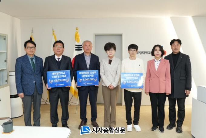 ÃÊ´ç´ëÇб³ ä¼öö ºÎÃÑÀåÀº ¡®´Ü±â°£¿¡ 1¾ï8¹é¸¸¿øÀ̶ó´Â Å« ±Ý¾×ÀÌ ¸ðÀÎ °ÍÀº ´ëÇÐÀÇ ¼ºÀåÀ» ¿°¿øÇÏ´Â ´ëÇÐ ±¸¼º¿ø°ú Áö¿ª»çȸÀÇ ±â´ë°¡ ¹Ý¿µµÈ °á°ú¡¯¶ó¸ç, ¡®¼ÒÁßÇÑ ±âʱÝÀº ´ëÇÐÀÇ °æÀï·ÂÀ» °ÈÇϰí ÇлýµéÀ» Áö¿øÇÏ´Â µ¥ Åõ¸íÇÏ°í ³»½ÇÀÖ°Ô »ç¿ëÇϰڴ١¯°í ¹àÇû´Ù.