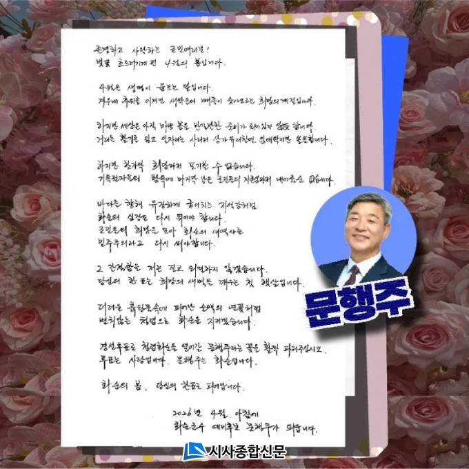 ¹®ÇàÁÖ È帴 ±º¹ÎÀÇ ÇÑ Ç¥°¡ Èñ¸ÁÀÇ »õº®À» ±ú¿ì´Â ù ÇÞ»ì°ú °°´Ù°í ºñÀ¯Çϸç, ¡°±× °£ÀýÇÔÀ» °áÄÚ ¿Ü¸éÇÏÁö ¾Ê°Ú´Ù. °æ¼± ÅõÇ¥·Î û·ÅÇÑ È¼øÀ» ¿¾î°¥ ¡®¹®ÇàÁÖ¡¯¶ó´Â ²ÉÀ» Ȱ¦ ÇÇ¿ö ´Þ¶ó¡±°í È£¼ÒÇß´Ù.