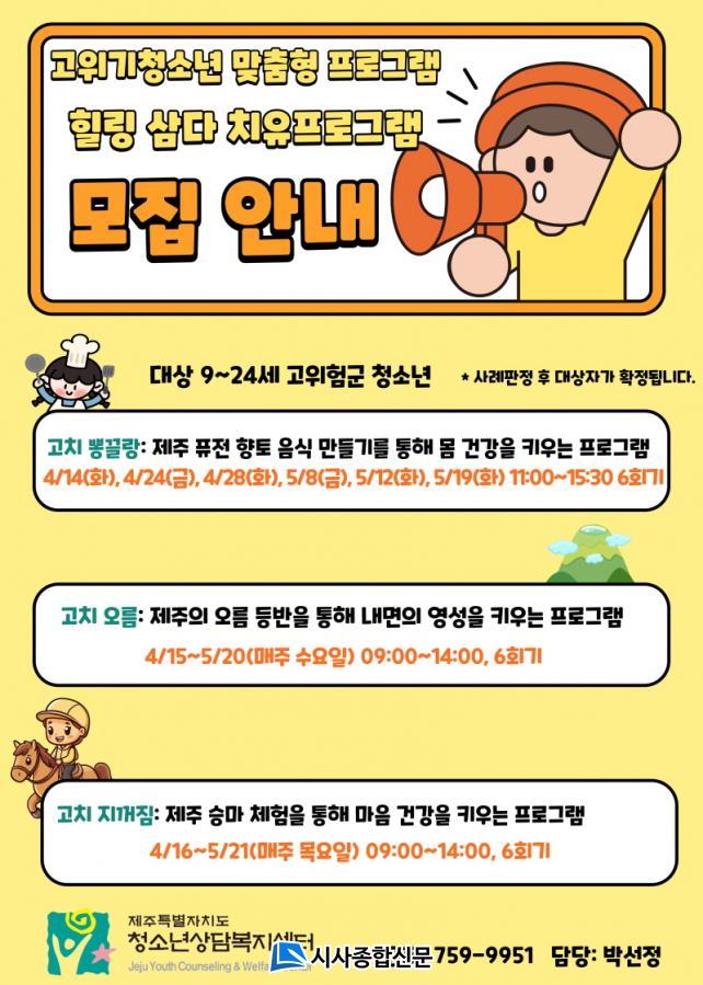 | Á¦ÁÖÆ¯º°ÀÚÄ¡µµÃ»¼Ò³â»ó´ãº¹Áö¼¾ÅÍ, °íÀ§±âû¼Ò³â ¸ÂÃãÇü ¡®Èú¸µ »ï´Ù¡¯ Ä¡À¯ÇÁ·Î±×·¥ ¿î¿µ |