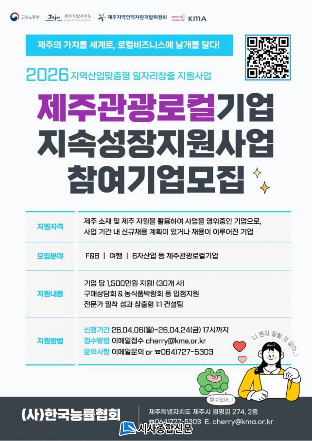 À̹ø »ç¾÷Àº Á¦ÁÖÀÇ À¯¡¤¹«Çü Áö¿ª ÀÚ¿øÀ» Ȱ¿ëÇØ µ¶Ã¢ÀûÀÎ ºñÁî´Ï½º ¸ðµ¨À» ¿î¿µ ÁßÀÎ F&B, ¿©Çà, 6Â÷ »ê¾÷ ºÐ¾ß µîÀÇ °ü±¤·ÎÄñâ¾÷À» ´ë»óÀ¸·Î ÇÑ´Ù. KMA´Â ÃÑ 30°³ ³»¿ÜÀÇ ±â¾÷À» ¼±Á¤ÇÏ¿© ±â¾÷ ´ç 1,500¸¸¿ø ±Ô¸ðÀÇ »ç¾÷È ÀÚ±ÝÀ» Áö¿øÇÒ °èȹÀÌ´Ù.
