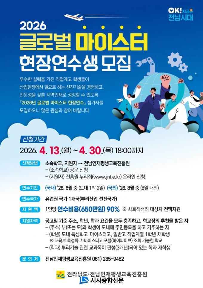 ¸ðÁý ´ë»óÀº Àü³²Áö¿ª Á÷¾÷°è°í »Ñ¸®±â¼ú °ü·Ã Çаú¿¡ ÀçÇÐ ÁßÀÎ 1Çгâ ÇлýÀ¸·Î, ¼·ù¿Í ¸éÁ¢ ½É»ç¸¦ °ÅÃÄ ÃÖÁ¾ ¼±¹ßÇÑ´Ù. ¿¬¼öºñ´Â 1Àδç ÃÖ´ë 650¸¸ ¿ø ¹üÀ§¿¡¼ 90%±îÁö Áö¿øµÇ¸ç, »çȸÀû ¹è·Á ´ë»óÀÚ´Â Àü¾× Áö¿øÇÑ´Ù.