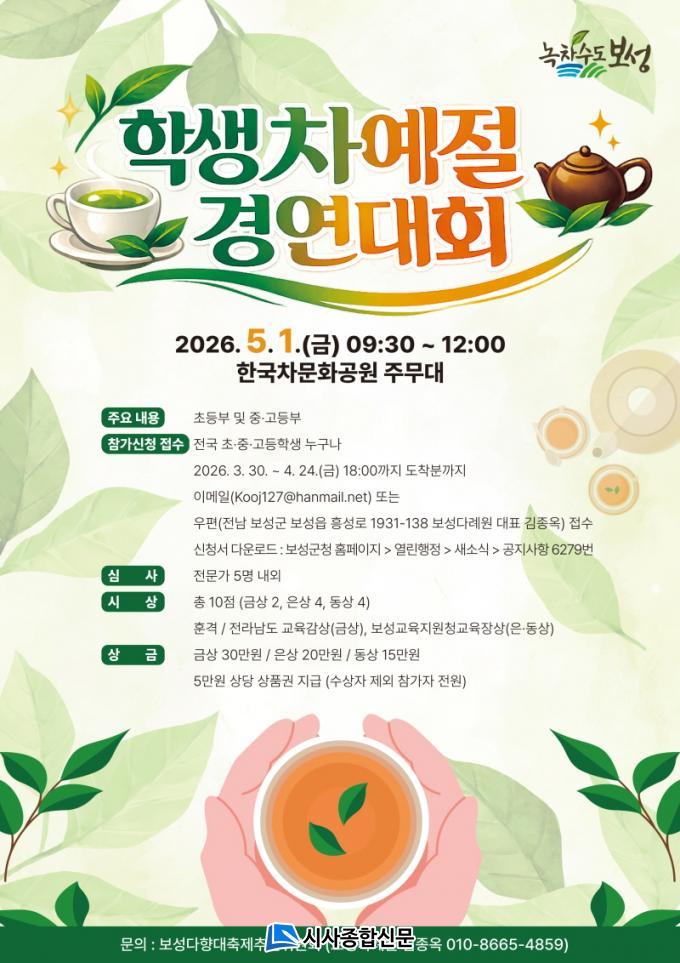 ´ëȸ´Â 2026³â 5¿ù 1ÀÏ ¿ÀÀü 9½Ã 30ºÐºÎÅÍ º¸¼º±º Çѱ¹Â÷¹®È°ø¿ø ÁÖ¹«´ë¿¡¼ ¿¸®¸ç, ÃʵîºÎ¿Í Áß¡¤°íµîºÎ 2°³ ºÎ¹®À¸·Î ³ª´µ¾î ÁøÇàµÈ´Ù. Âü°¡ ´ë»óÀº Àü±¹ ÃÊ¡¤Áß¡¤°íµîÇлý ´©±¸³ª °¡´ÉÇÏ´Ù.