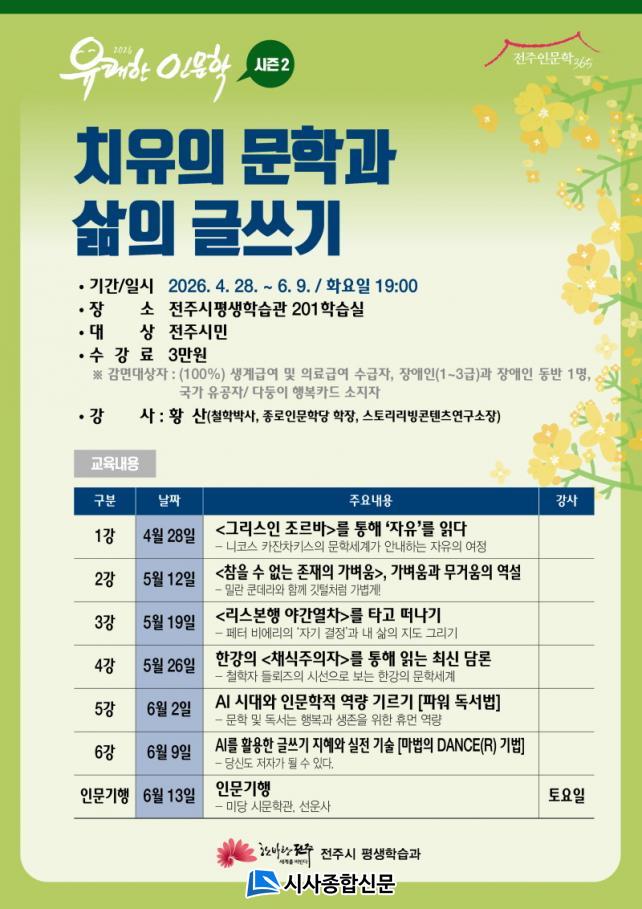 ÀüÁÖ½ÃÆò»ýÇнÀ°üÀº ½Ã¹ÎµéÀÌ Àι®ÇÐÀ» »êÃ¥ÇÏµí ½±°Ô Á¢ÇÒ ¼ö ÀÖµµ·Ï ¿À´Â 27ÀϺÎÅÍ 6¿ù 23ÀϱîÁö ¸ÅÁÖ ¿ù¿äÀϰú È¿äÀÏ ¿ÀÈÄ 7½Ã ¡®À¯ÄèÇÑ Àι®ÇС¯ ÇÁ·Î±×·¥À» ¿î¿µÇÑ´Ù.