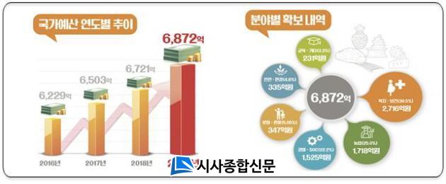 ºÐ¾ßº°·Î º¸¸é °æÁ¦․SOC ºÐ¾ß 1,525¾ï¿ø, ³ó¾÷ºÐ¾ß 1,718¾ï¿ø, ¹®È․°ü±¤ 347¾ï¿ø, º¹Áö¡¤º¸°Ç ºÐ¾ß 2,716¾ï¿ø, ¾ÈÀü¡¤È¯°æ ºÐ¾ß 335¾ï¿ø µîÀÌ´Ù.