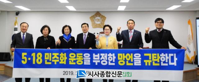 [ÇÔÆò/½Ã»çÁ¾ÇսŹ®]Àåö ±âÀÚ = ÇÔÆò±ºÀÇȸ(ÀÇÀå Á¤Ã¶Èñ)´Â 19ÀÏ ¿¸° Á¦246ȸ ÀÓ½Ãȸ¿¡¼ ¡®5¡¤18 ¹ÎÁÖÈ ¿îµ¿À» ºÎÁ¤ÇÑ ¸Á¾ðÀ» ±ÔźÇÑ´Ù¡¯´Â ¼º¸í¼¸¦ ¹ßÇ¥Çϰí, 5¡¤18 ¹ÎÁÖÈ ¿îµ¿ÀÇ ¿ª»çÀû °¡Ä¡¸¦ ÆïÈÑÇϰí ÇãÀ§»ç½ÇÀ» À¯Æ÷ÇÑ ÀÚÀ¯Çѱ¹´ç ÀÇ¿øµéÀÇ »ç°ú¸¦ Ã˱¸Çß´Ù.