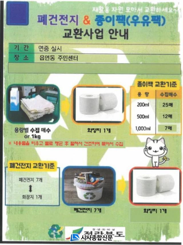 Àü¶óºÏµµ¿¡ µû¸£¸é ÁֹεéÀÌ Æó°ÇÀüÁö 7°³¸¦ ¸ð¾Æ À¾¡¤¸é »ç¹«¼Ò³ª µ¿ Áֹμ¾ÅÍ·Î °¡Á®¿À¸é ÈÀåÁö 1°³·Î ±³È¯ÇØ ÁØ´Ù. ¶ÇÇÑ ¿ìÀ¯¸¦ ¸¶½Ã°í ³²Àº Á¾ÀÌÆÑÀº Å©±â¿¡ µû¶ó 7¸Å¿¡¼ 25¸Å¸¦ °¡Á®¿À¸é ÈÀåÁö 1°³¸¦ Áö±ÞÇÏ°Ô µÈ´Ù.