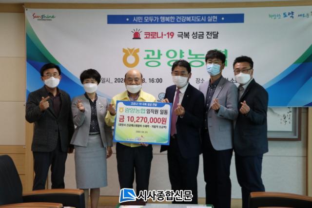 À̹ø¿¡ Àü´ÞµÈ ¼º±ÝÀº ±¤¾ç½Ã¿¡¼ Àü ½Ã¹Î¿¡°Ô Áö±ÞµÇ´Â ±ä±ÞÀç³»ýȰºñÀÇ ÀϺθ¦ ±¤¾ç³óÇù ÀÓÁ÷¿øµéÀÌ ÀÚ¹ßÀûÀ¸·Î ¸ð±ÝÇÏ¿© ¸¶·ÃÇÑ ±â±ÝÀ¸·Î °ü³» Ãë¾à°èÃþ ¹× »çȸº¹Áö½Ã¼³¿¡ Áö¿øÇÏ¿© »ç¿ë µÉ ¿¹Á¤ÀÌ´Ù.