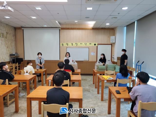 [½Ã»çÁ¾ÇսŹ® = ¿À½ÂÅà ±âÀÚ] ±¤¾ç°æÂû¼(¼Àå ±èÇö½Ä)´Â 8¿ù 14ÀÏ Ã»¼Ò³â µ¿Çà ÇÁ·ÎÁ§Æ® ´Üºñ(2Â÷)¸¦ ½Ç½ÃÇÏ¿© û¼Ò³â »ó´ãº¹Áö¼¾ÅÍ °ËÁ¤°í½Ã ÀÀ½Ã Çлý 27¸í¿¡°Ô »õ·Î¿î Ãâ¹ßÀ» ÀÀ¿øÇϱâ À§ÇØ µ¶(µ¶¼´ë)µµ(µµ½Ã¶ô)¸¦ ¼±¹°ÇÏ´Â ¶æ±íÀº ½Ã°£À» °¡Á³´Ù.
