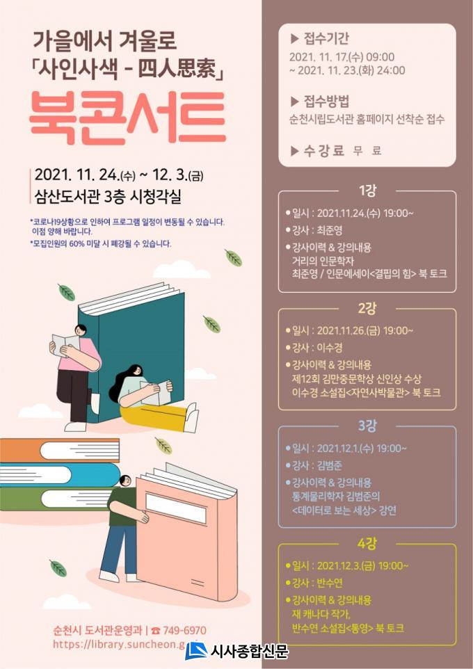 ¼øÃµ½Ã´Â ¿À´Â 11¿ù 24ÀϺÎÅÍ 12¿ù 3ÀϱîÁö ¸ÅÁÖ ¼ö¡¤±Ý¿äÀÏ Àú³á 7½Ã¿¡ ¼øÃµ »ï»êµµ¼°ü 3Ãþ ½Ãû°¢½Ç¿¡¼ ³× ¸íÀÇ ÀÛ°¡¿Í ÇÔ²²ÇÏ´Â ¡®»çÀλç»ö ºÏÄܼƮ¡¯¸¦ ¿î¿µÇÑ´Ù.