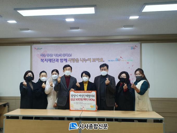 [½Ã»çÁ¾ÇսŹ® = Àå¹Î±Ô ±âÀÚ] ±¤¾ç½Ã ¿©¼º´ÜüÇùÀÇȸ´Â Áö³ 16ÀÏ (Àç)±¤¾ç½Ã»ç¶û³ª´®º¹ÁöÀç´Ü(ÀÌ»çÀå ±èÀç°æ)¿¡ ¹é¹Ì 190kg°ú ÈÄ¿ø±Ý 50¸¸ ¿øÀ» ÁöÁ¤ ±âŹÇß´Ù.