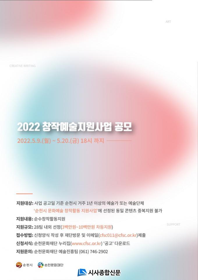 ¼øÃµ¹®ÈÀç´Ü °ü°èÀÚ´Â ¡°Áö¿ª¿¹¼ú°è°¡ Äڷγª19·Î Èûµç »óȲ ¼Ó¿¡¼ À̹ø Áö¿ø»ç¾÷ÀÌ ¿¹¼ú°¡µéÀÇ ÀÚÀ¯·Î¿î âÀÛȰµ¿¿¡ µµ¿òÀÌ µÇ±â¸¦ ¹Ù¶ó¸ç, ¾ÕÀ¸·Îµµ Áö¿ª ¿¹¼úÀÎ ¹× ¿¹¼ú´ÜüÀÇ Ã¢ÀÛȰµ¿ Áö¿ø°ú ¹®È¿¹¼ú ÁøÈïÀ» À§ÇØ ³ë·ÂÇϰڴÙ.¡±¶ó°í ¸»Çß´Ù.