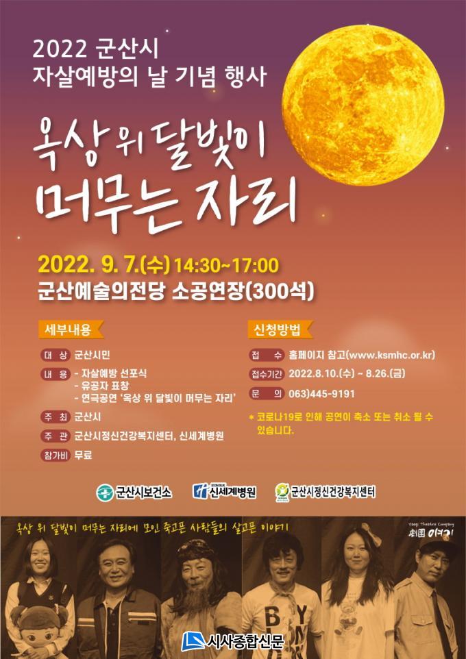 Àڻ쿹¹æ ¿¬±Ø°ø¿¬¡®¿Á»ó À§ ´ÞºûÀÌ ¸Ó¹«´Â ÀÚ¸®¡¯(¾ê±â¾¾¾îÅÍÄÄÆÛ´Ï)´Â Áö³ 2019³âºÎÅÍ »ý¸íÁ¸Áß, Àڻ쿹¹æ ¿¬±ØÀ¸·Î ¿Á»ó À§ ´ÞºûÀÌ ¸Ó¹«´Â ÀÚ¸®¿¡ ¸ðÀÎ Á×°íÇ »ç¶÷µéÀÇ »ì°íÇ À̾߱â·Î ±¸¼ºµÅÀÖÀ¸¸ç ÀÚ»ìÀ» ¸¶À½¿¡ ǰÀº »ç¶÷ÀÇ ¸¶À½À» µû¶æÇÏ°Ô ¿òÁ÷ÀÏ ¼ö ÀÖ´Â °ø¿¬ÀÌ´Ù. Âü¿© ½ÅûÀº ¿À´Â 26ÀϱîÁö »çÀüÁ¢¼ö ¹æ¹ýÀ¸·Î °¡´ÉÇϸç ÀÚ¼¼ÇÑ »çÇ×Àº ±º»ê½ÃÁ¤½Å°Ç°º¹Áö¼¾ÅÍ È¨ÆäÀÌÁö (www.ksmhc.or.kr)¸¦ Âü°íÇÏ¸é µÈ´Ù.