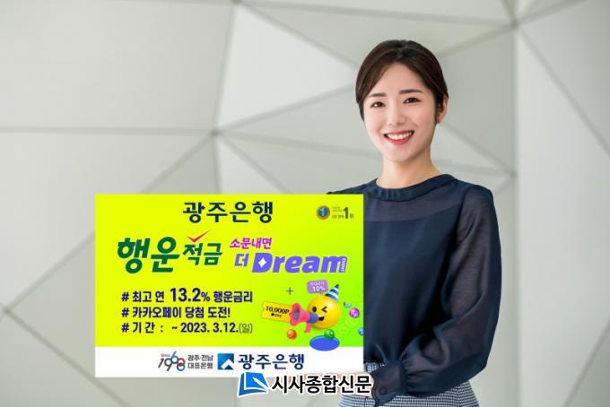 ¡®Çà¿îÀû±Ý ¼Ò¹®³»¸é ´õ Dream¡¯ À̺¥Æ®ÀÇ Ã¹ ¹øÂ° À̺¥Æ®ÀÎ ¡ã¿¬ 10%p ¿ì´ë±Ý¸® ´ç÷ È®·üÀ» ³ô¿©¶ó!´Â ¿À´Â 2023³â 3¿ù 12ÀϱîÁö ÁøÇàÇÑ´Ù. ±¤ÁÖÀºÇà ½º¸¶Æ®¹ðÅ· ¹× ¸ð¹ÙÀÏÀ¥¹ðÅ·¿¡¼ Çà¿îÀû±Ý ÇöȲÆÇ ÇÏ´ÜÀÇ ¡®¼Ò¹®³»°í Çà¿î¹øÈ£ ´õ ¹Þ±â¡¯ ¹öưÀ» Ŭ¸¯ÇØ ÁöÀο¡°Ô īī¿ÀÅåÀ̳ª ¹®ÀÚ¸Þ½ÃÁö·Î °øÀ¯ ½Ã ¿¬ 10%p ¿ì´ë±Ý¸® ´ç÷À» À§ÇÑ Çà¿î¹øÈ£(6°³ ¼ýÀÚ 1set)°¡ ¸ÅÁÖ ÃÖ´ë 4¸Å(6°³ ¼ýÀÚ 4set)±îÁö Ãß°¡ Á¦°øµÈ´Ù. µû¶ó¼ Çà¿î¹øÈ£¸¦ ÃÖ´ë 5¸Å °®°Ô µÇ¾î ´ç÷ È®·üÀÌ ³ô¾ÆÁø´Ù.