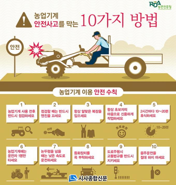 ÀÌ¿¡ 119»ýȰ¾ÈÀü¼øÂû´ë´Â ÀÌ °°Àº ¡®³ó±â°è ¾ÈÀü»ç°í¡¯ ¿¹¹æÀ» À§ÇØ Ãë¾à°èÃþ ¹æ¹® ½Ã ¡ã³óÀÛ¹° µî °ú´ÙÀûÀç ±ÝÁö ¡ã³ó±â°è »ç¿ë Àü¤ýÈÄ Ã¶ÀúÇÑ Á¡°Ë ¡ãÀ½ÁÖ ÈÄ ³ó±â°è ¿îÇà ±ÝÁö ¡ãÃß¶ô¤ýÀüµµ À§Ç輺ÀÌ ³ôÀº ³ó·Î¿Í °æ»çÁø ÃâÀÔ·Î À̵¿ ½Ã °¨¼Ó ¡ã¾ß°£ÁÖÇà ½Ã ¹Ý»çÆÇ ¹× ¹æÇâÁö½Ãµî ºÎÂø ¡ãµµ·Î¿îÇà ½Ã ±³Åë¹ý±Ô Áؼö ¡ã¼Ò¸Å³ª ¿ÊÀÚ¶ôÀÌ Á¶¿©Áø ÀÛ¾÷º¹ Âø¿ë µîÀ» È«º¸Çϰí ÀÖ´Ù.