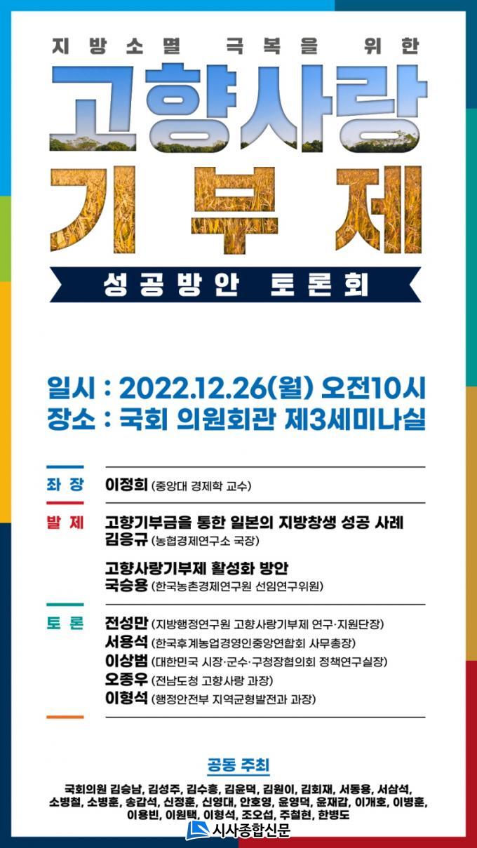 ³»³â 1¿ù °íÇâ»ç¶û±âºÎÁ¦ ½ÃÇàÀ» ¾ÕµÎ°í ¿¸° Åä·Ðȸ´Â ¡âÀÌÁ¤Èñ(Áß¾Ó´ëÇб³ °æÁ¦Çаú ±³¼ö)¸¦ ÁÂÀåÀ¸·Î, ¡â±èÀÀ±Ô(³óÇù°æÁ¦¿¬±¸¼Ò ±¹Àå)ÀÇ ¡®°íÇâ±âºÎ±ÝÀ» ÅëÇÑ ÀϺ»ÀÇ Áö¹æÃ¢»ý ¼º°ø»ç·Ê¡¯¿Í ¡â±¹½Â¿ë(Çѱ¹³óÃ̰æÁ¦¿¬±¸¿ø ¼±ÀÓ¿¬±¸À§¿ø)ÀÇ ¡®°íÇâ»ç¶û±âºÎÁ¦ Ȱ¼ºÈ ¹æ¾È¡¯À» ÁÖÁ¦·Î ¹ßÁ¦°¡ ÀÌ·ç¾îÁø´Ù.
