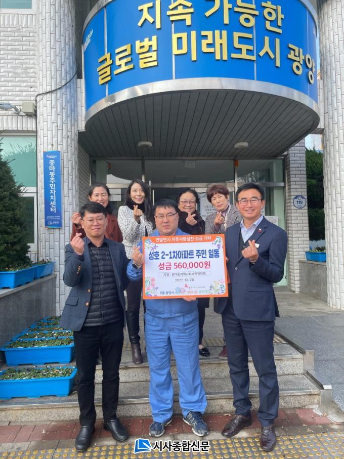 ÀÓ¼º±Ù ¼ºÈ£2-1Â÷ ¾ÆÆÄÆ® ÀÔÁÖÀÚ´ëǥȸÀÇ È¸ÀåÀº ¡°ÀÔÁֹεéÀÌ ´Ù¾çÇÑ ºÀ»çȰµ¿ µîÀ» ÅëÇØ Á¤¼ºÀ» ¸ð¾Æ ÀÛÀº ³ª´®ÀÌÁö¸¸ ¿ì¸® ÁÖº¯ÀÇ ¾î·Á¿î ÀÌ¿ô¿¡°Ô ³ª´®À» ½ÇõÇÏ°í ½Í¾î ¼º±ÝÀ» ±âŹÇß´Ù¸ç, ¾î·Á¿î ÀÌ¿ôÀÌ ÁÖº¯ÀÇ µû¶æÇÑ ¸¶À½À» Àü´Þ¹Þ±æ ¹Ù¶õ´Ù¡±°í ÀüÇß´Ù.