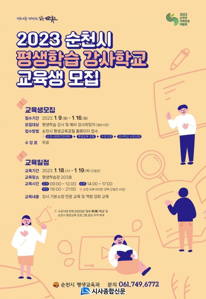 ±³À°Àº ¿À´Â 18ÀϺÎÅÍ ÀÌÆ²°£ ¼øÃµ½Ã ¹®È°Ç°¼¾ÅÍ Æò»ýÇнÀ°ü¿¡¼ ÁøÇàµÇ¸ç, ¿ÀÀü¡¤¿ÀÈÄ¡¤¾ß°£¹Ý Áß ¼±ÅÃÇØ ¼ö°ÇÒ ¼ö ÀÖ´Ù.