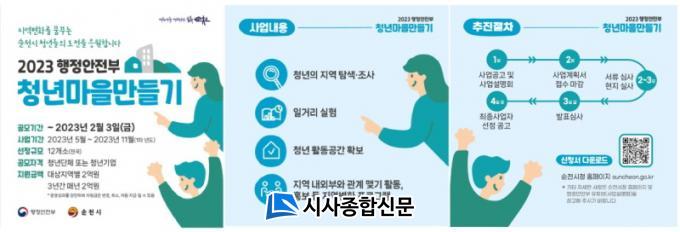 û³â¸¶À» ¸¸µé±â »ç¾÷¿¡ °ü½É Àִ û³â´Üü´Â ÇàÁ¤¾ÈÀüºÎ ¶Ç´Â ¼øÃµ½Ã ´©¸®Áý¿¡ °Ô½ÃµÈ °ø°í¹®À» È®ÀÎÇØ ´ÙÀ½ ´Þ 3ÀϱîÁö ¼øÃµ½Ã û³âÁ¤Ã¥°ú·Î »ç¾÷°èȹ¼¸¦ Á¦ÃâÇÏ¸é µÈ´Ù.