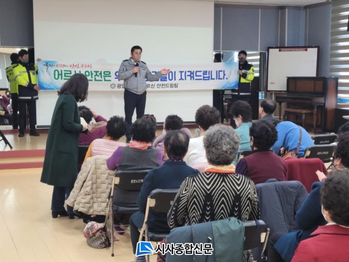 À̳¯ Ȱµ¿À» ÅëÇØ ¾î¸£½Å Ä¡¾È ¹®Á¦ ÀÇ°ß ¼ö·Å ¹× ³ëÀÎÇÐ´ë ½Å°í, º¸À̽ºÇÇ½Ì ¿¹¹æ, ¾ÈÀüÇÑ º¸Çà¹æ¹ý, ±³Åë»ç°í ¿¹¹æ µî ¹üÁË¿¡ Ãë¾àÇÑ ¾î¸£½ÅÀ» ´ë»óÀ¸·Î ±³À°À» ÁøÇàÇϰí, Çü±¤»ö Á¶³¢ µî ±³Åë ¾ÈÀü¿ëǰÀ» Àü´ÞÇß´Ù.