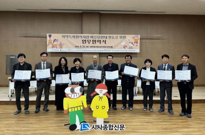 ±¤ÁÖµ¿±¸Ã»¼Ò³â¼ö·Ã°ü ¡®À§¾Æ´õȦ¡¯¿¡¼ ÁøÇàµÈ Çù¾à½ÄÀº ¹®¼ö¿µ ±¤ÁÖ±¤¿ª½Ãû¼Ò³âȰµ¿ÁøÈï¼¾ÅÍÀå°ú ÁöÇý¶õ ±¤ÁÖ³²ÃʵîÇб³Àå, ¹Ú¹Î¾Æ ¹«µîÁßÇб³Àå, ±èÁøÈï ±¤ÁÖÇпîÃʵîÇб³Àå, Àå¿ëÀÏ ±¤ÁÖµ¿±¸Ã»¼Ò³â¼ö·Ã°üÀå, ¹è¿ëÅ ºû°íÀ»Á¾ÇÕ»çȸº¹Áö°üÀå, ±è¼ø±Ç ±¤ÁÖµ¿±¸ÀÚ¿øºÀ»ç¼¾ÅÍ, ÀÌÁ¤ÀÌ Áö¿ø1µ¿ÇàÁ¤º¹Áö¼¾ÅÍ µ¿Àå, ±è¼®°ï Áö¿ø2µ¿ÇàÁ¤º¹Áö¼¾ÅÍ µ¿Àå, ¼ÁÖ¼· ÇпÇàÁ¤º¹Áö¼¾ÅÍ µ¿ÀåÀ» ºñ·ÔÇÑ °ü°èÀÚ 20¿© ¸íÀÌ Âü¿©Çß´Ù.
