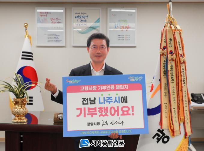 ¶ÇÇÑ Á¤ ½ÃÀåÀº Çõ½Åµµ½ÃÀÎ Àü³² ³ªÁÖ½ÃÀÇ °íÇâ»ç¶û±âºÎÁ¦ Ȱ¼ºÈ¸¦ ÀÀ¿øÇÏ¸ç ±âºÎ±ÝÀ» ±âŹÇÑ ÈÄ À±º´Å ³ªÁÖ½ÃÀåÀ» ´ÙÀ½ 縰Áö ÁÖÀÚ·Î Áö¸íÇß´Ù.