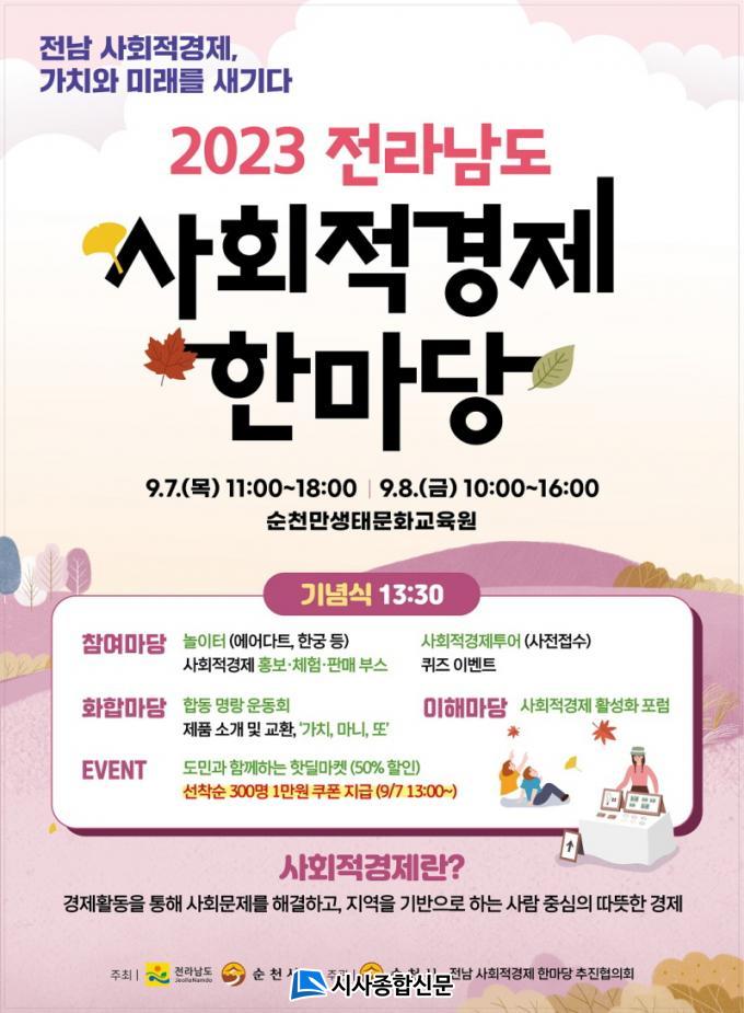 À̹ø Çà»ç´Â ¡®Àü³² »çȸÀû°æÁ¦ °¡Ä¡¿Í ¹Ì·¡¸¦ »õ±â´Ù¡¯¸¦ ÁÖÁ¦·Î »çȸÀû°æÁ¦ÀÇ °³³ä°ú °¡Ä¡¸¦ µµ¹Îµé°ú °øÀ¯ÇÏ°í µµ³» »çȸÀû°æÁ¦±â¾÷ÀÇ Á¦Ç°°ú ¼ºñ½º¸¦ È«º¸Çϱâ À§ÇØ ¸¶·ÃµÆ´Ù.