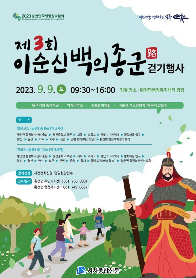 À̹ø Çà»ç´Â À̼ø½ÅÀÌ ¹éÀÇÁ¾±ºÇÏ¸ç °É¾ú´ø ȲÀü¸é ±¸°£À» µû¶ó °ÉÀ¸¸é¼ À̼ø½Å À屺ÀÇ ³ª¶ó »ç¶û Á¤½ÅÀ» ¹è¿ì°í, °¡Á·°ú ÇÔ²² ¼ÒÅëÇÏ¸ç ½É½ÅÀÇ °Ç°±îÁö ì±æ ¼ö ÀÖ´Â Çà»ç´Ù.