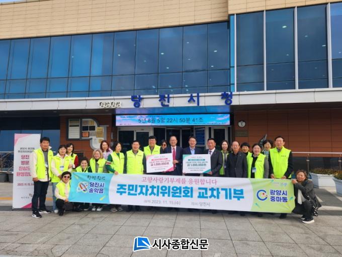 ±³Â÷ ±âºÎ½Ä¿¡´Â Á߸¶µ¿ ÁÖ¹ÎÀÚÄ¡À§¿ø 17¸í°ú ¼Û¾ÇÀ¾ ÁÖ¹ÎÀÚÄ¡À§¿ø 15¸íÀÌ Âü¼®ÇÑ °¡¿îµ¥ ¾ç À§¿øÀåÀÌ °íÇâ»ç¶û±âºÎ±Ý 100¸¸¿øÀ» »óÈ£ Àü´ÞÇÏ°í ±â³ä»çÁøÀ» ÃÔ¿µÇÏ¸ç ¾ç Àڸŵµ½ÃÀÇ ¹ßÀü°ú °íÇâ»ç¶û±âºÎÁ¦¸¦ ÀÀ¿øÇß´Ù.±âºÎ±Ý Àü´Þ½Ä ¿Ü¿¡µµ ¼Û¾ÇÀ¾ ÁÖ¹ÎÀÚġȸ¿¡¼´Â ´çÁø½ÃÀÇ Æ¯»êǰÀÎ °í±¸¸¶¿Í ½ÒÀ», Á߸¶µ¿ ÁÖ¹ÎÀÚÄ¡À§¿øÈ¸¿¡¼´Â ±¤¾çÀÇ Æ¯»êǰÀÎ ¸Å½Ç¿ø¾×, ±¤¾ç¸·°É¸®, ±èºÎ°¢ µîÀ» Àü´ÞÇϸç Áö¿ªÀÇ Æ¯»êǰ°ú °ü±¤Áö µîÀ» È«º¸Çß´Ù.