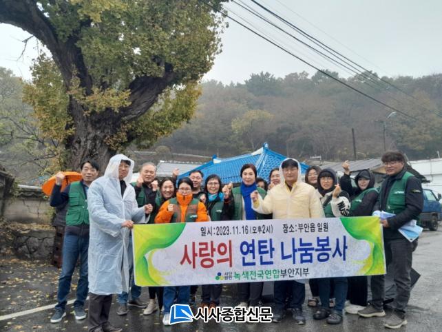 [½Ã»çÁ¾ÇսŹ® = ±è¿¬Èñ ±âÀÚ] ºÎ¾È±º ºÎ¾ÈÀ¾ ¿¡³ÊÁö Ãë¾à°èÃþ¿¡ Ãß¿î °Ü¿ïÀ» ¸Â¾Æ ³ì»öÀü±¹¿¬ÇÕ ºÎ¾È±º ÁöºÎ(ȸÀå ÀÓº´±º)¿Í ³ì»öÀü±¹¿¬ÇÕ Àü¶óºÏµµ ȯ°æ°¨½Ã´Ü(´ÜÀå À̶̹ó) ȸ¿øÀÌ Âü¿©ÇÑ °¡¿îµ¥ Áö³ 16ÀÏ 2°¡±¸¿¡ 600¿© ÀåÀÇ ¿¬Åº ³ª´® Çà»çÀ» ÁøÇàÇß´Ù°í ºÎ¾ÈÀ¾Àº ¹àÇû´Ù.