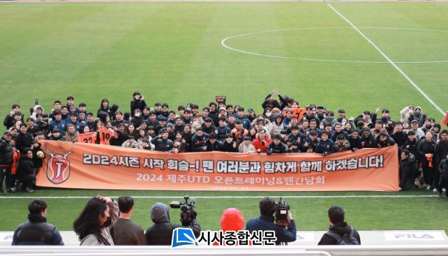 Á¦ÁÖ´Â 2¿ù 24ÀÏ(Åä) ¿ÀÀü 10½Ã Á¦ÁÖ¿ùµåÄŰæ±âÀå¿¡¼ ÆÒ °£´ãȸ¿Í ¿ÀÇÂÆ®·¹ÀÌ´×À» °³ÃÖÇß´Ù. ¿ÃÇØ ±èÇйü °¨µ¶ÀÇ Ã¼Á¦ ¾Æ·¡ »õ·Î¿î ¼º°øÀÇ ¿¹¿À» °¡Çϰí ÀÖ´Â Á¦ÁÖ´Â À̳¯ ÆÒ °£´ãȸ¿Í ¿ÀÇÂÆ®·¹ÀÌ´×À» ÅëÇØ ÆÒµé°ú ±¸´Ü ¿î¿µ ¹æÇâ¿¡ ´ëÇØ ±³°¨Çϰí, Áñ°Å¿î Ãß¾ï±îÁö ½×¾Ò´Ù. ºñ°¡ ³»¸®°í ¹Ù¶÷ÀÌ °ÇÑ ±ÄÀº ³¯¾¾¿¡µµ ÆÒµéÀÇ ¼º¿øÀº ¶ß°Å¿ü°í, ÀÌ¿¡ Á¦ÁÖ´Â ±âÁ¸ Âü°¡ÀÚ ¼±Âø¼ø 100¸í¿¡¼ 150¸íÀ¸·Î È®´ëÇÏ¸ç ±× ±â´ë¿¡ º¸´äÇϰíÀÚ ´õ¿í ³ë·ÂÇß´Ù.