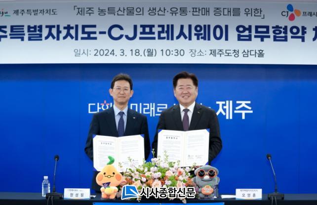 Á¦ÁÖµµ´Â 18ÀÏ ¿ÀÀü 10½Ã 30ºÐ Á¦ÁÖµµÃ» º»°ü 2Ãþ »ï´ÙȦ¿¡¼ CJÇÁ·¹½Ã¿þÀÌ(´ëÇ¥ÀÌ»ç Á¤¼ºÇÊ)¿Í ¡®Á¦ÁÖ ³ó»ê¹° ¹× °¡°ø½ÄǰÀÇ »ý»ê¡¤À¯Å롤ÆÇ¸Å¸¦ À§ÇÑ »ó»ý¹ßÀü ¾÷¹«Çù¾à¡¯À» ü°áÇß´Ù.