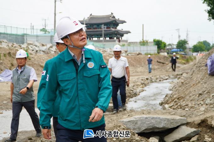 À±º´Å ³ªÁÖ½ÃÀåÀº À̳¯ °ø»ç ÇöÀåÀ» ã¾Æ »ç¾÷ ÃßÁø ÇöȲ°ú ÇâÈÄ °èȹ µîÀ» º¸°í ¹Þ°í °èȹ °ø»ç±â°£ ³» Áذø ¿©ºÎ, ÇÏõ ³» ¼ö½É À¯Áö °èȹ, ±âÁ¸ ¼®Ãà ¹× ±Ý¼º±³ Ȱ¿ë ¹æ¾È, ¿©¿ïº¸ ÁÖº¯ ½°ÅÍ Á¶¼º, ¿ì¼ö±â ÀÚ¿¬Àç³ ´ëÀÀ °èȹ µîÀ» ¼¼¼¼È÷ Á¡°ËÇß´Ù.