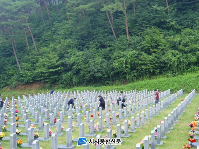 À̳¯ Çà»ç´Â ÇöÃæÅ¾ Âü¹è ÈÄ ÀÓ½ÇÈ£±¹¿øÃøÀÌ 6¿ù È£±¹º¸ÈÆÀÇ ´ÞÀ» ¸Â¾Æ ¹¦¿ª °÷°÷¿¡ ºñÄ¡ÇÑ Å±ر⸦ Á¤¸®Çϰí ÁÖº¯ Á¤È Ȱµ¿À» ÇÔÀ¸·Î½á ³ª¶ó»ç¶ûÀÇ ¸¶À½À» ´ÙÁö°í, È£±¹¿µ·ÉÀÇ ¼þ°íÇÑ ¾Ö±¹Á¤½ÅÀ» ±â¸®¸ç Ã߸ðÇϱâ À§ÇØ ¸¶·ÃµÇ¾ú´Ù.