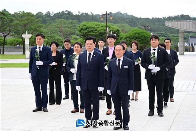 | ±¤ÁÖ ¼±¸ÀÇȸ Àü½ÂÀÏ ÀÇÀåÀ» ºñ·ÔÇÑ ¼±¸ÀÇȸ ÀÇÀå´ÜÀÌ 8ÀÏ ±¹¸³5.18¹ÎÁÖ¹¦Áö¼ Âü¹èÇϰí ÀÖ´Ù. (»çÁø=±¤ÁÖ ¼±¸ÀÇȸ Á¦°ø)