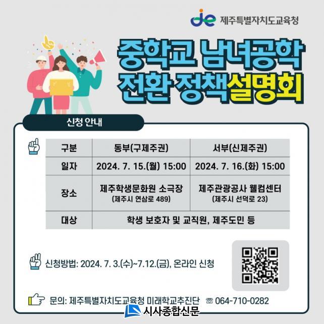 [½Ã»çÁ¾ÇսŹ® = °í¼º¹Î ±âÀÚ] Á¦ÁÖÆ¯º°ÀÚÄ¡µµ±³À°Ã»(±³À°°¨ ±è±¤¼ö)Àº 7¿ù 15ÀÏ(¿ù) ¿ÀÈÄ 3½Ã Á¦ÁÖÇлý¹®È¿ø ¼Ò±ØÀå, 16ÀÏ(È) ¿ÀÈÄ 3½Ã Á¦ÁÖ°ü±¤°ø»ç À£ÄÄȦ¿¡¼ Çлý º¸È£ÀÚ ¹× ±³Á÷¿ø, Á¦ÁÖµµ¹Î µîÀ» ´ë»óÀ¸·Î 2Â÷¿¡ °ÉÃÄ ¡®ÁßÇб³ ³²³à°øÇÐ Àüȯ Á¤Ã¥¼³¸íȸ¡¯¸¦ °³ÃÖÇÑ´Ù.